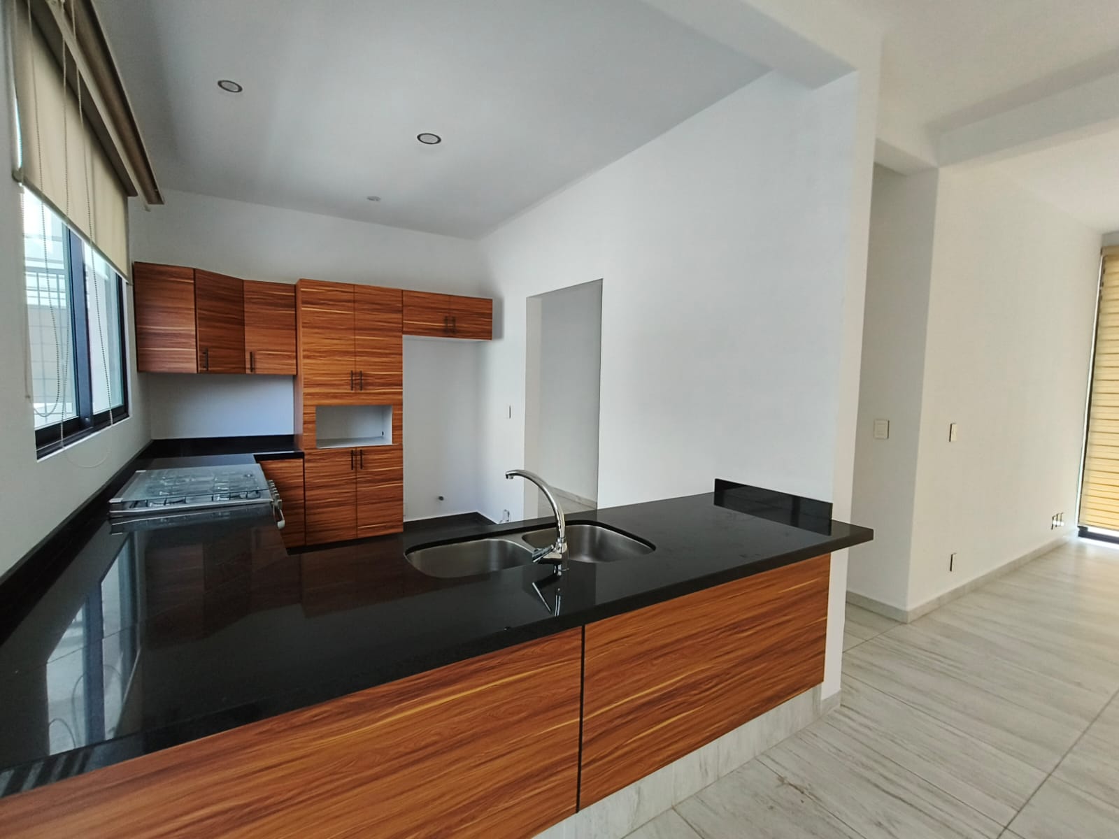Espaciosa área de sala comedor con cocina equipada abierta con barra para desayunador que adecua este espacio para sus reuniones o convivencia familiar.