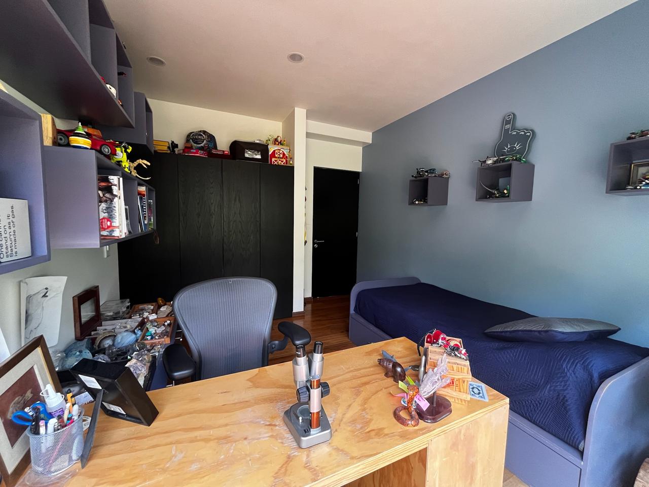 Tres recamaras cada una con baño completo, la principal y una secundaria con amplias terrazas y vista al jardín comunal.