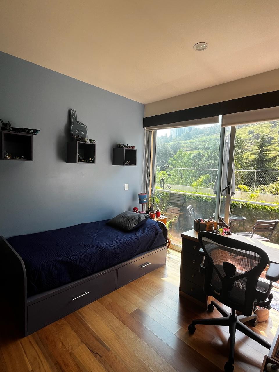Tres recamaras cada una con baño completo, la principal y una secundaria con amplias terrazas y vista al jardín comunal.