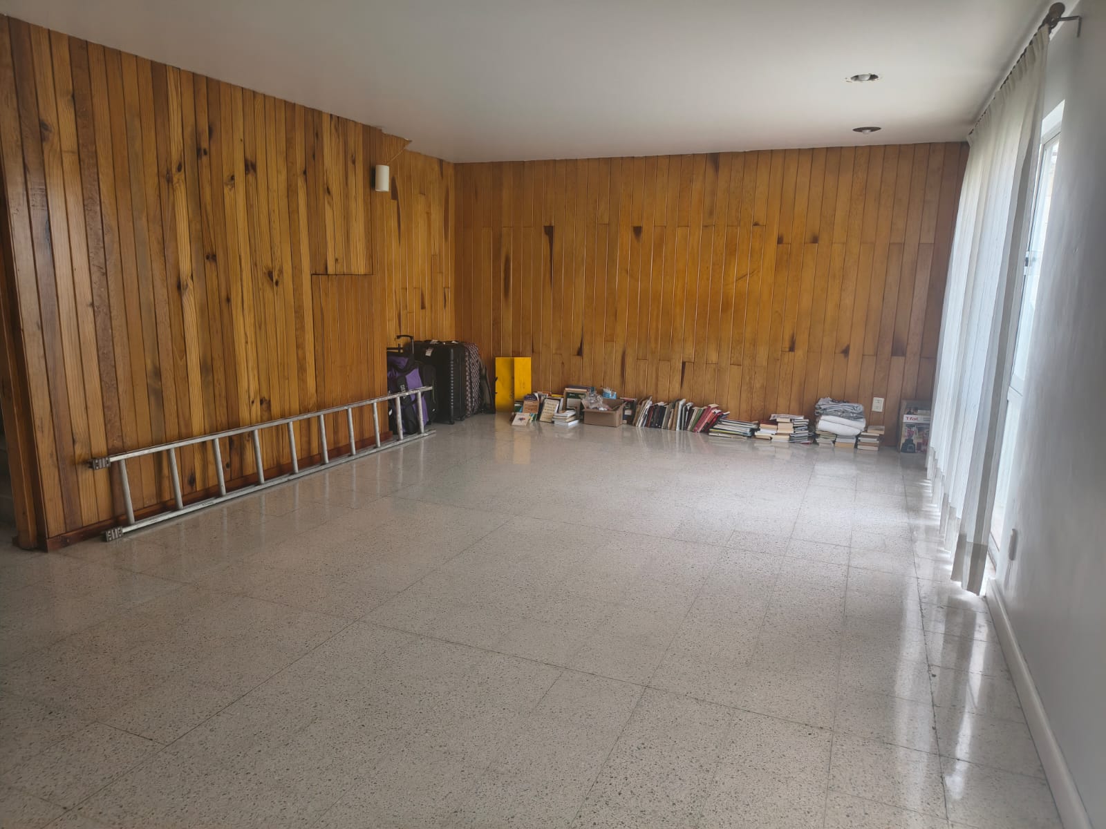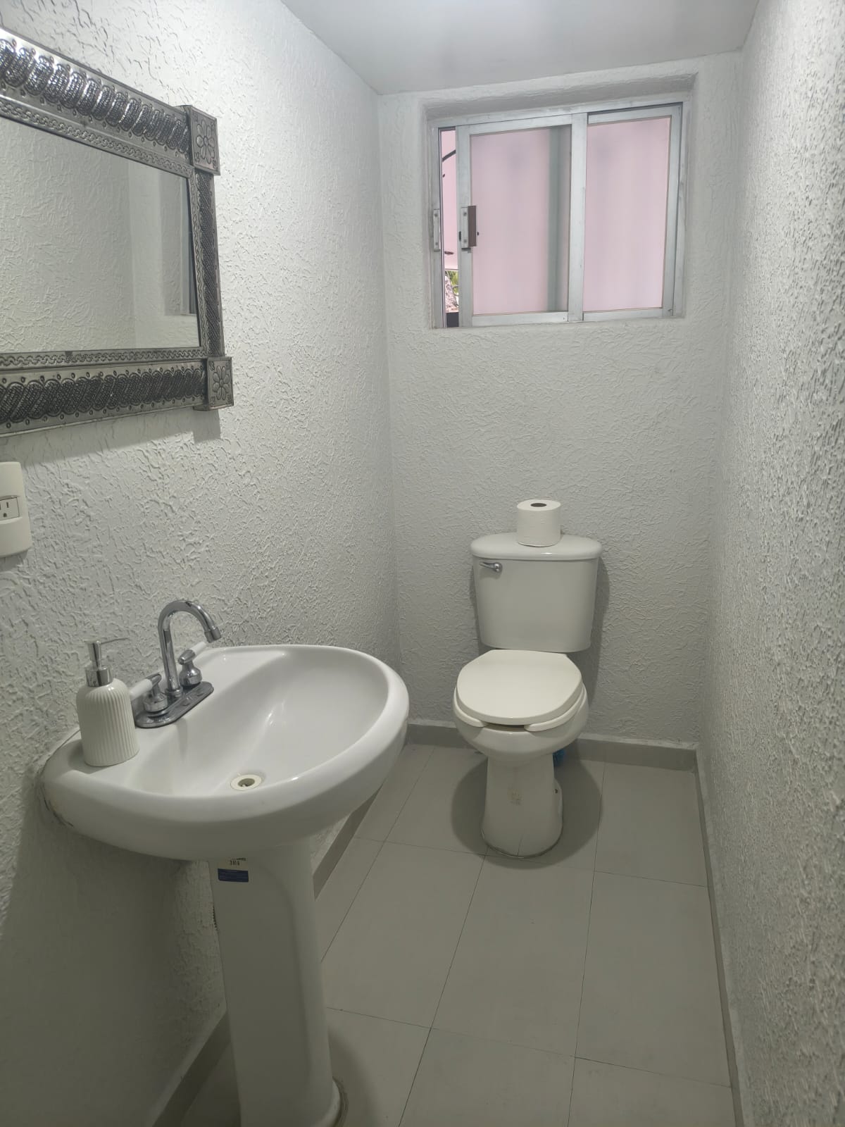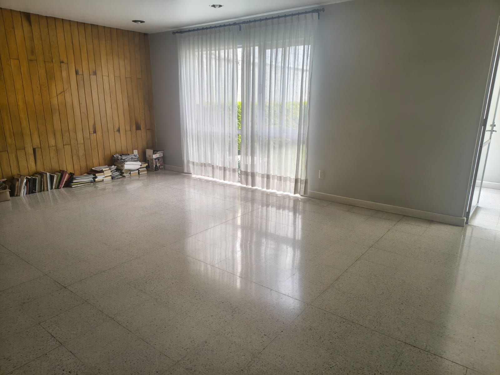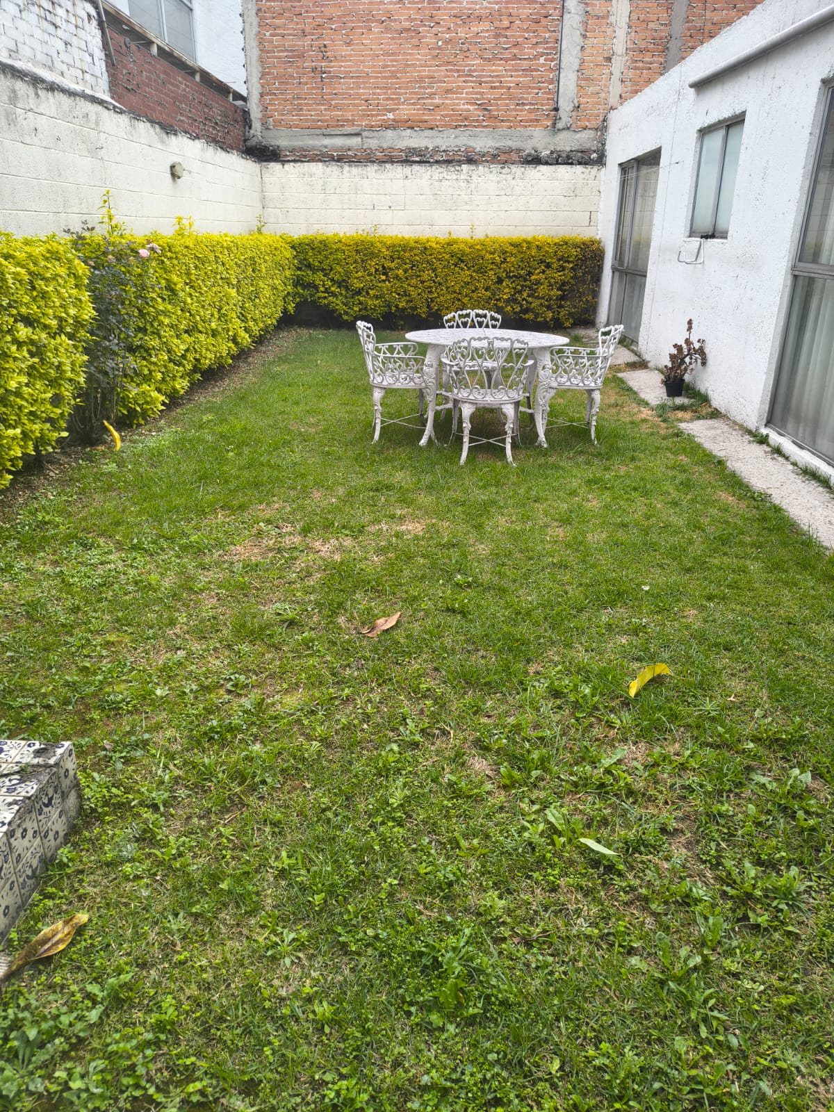 Casa amplia e iluminada, cuenta en la planta baja con sala comedor, ½ baño de visitas, estudio, cocina con espacio para antecomedor, y dos recamaras con un baño completo, el cuarto de servicio, un jardín de 70mts., y garaje para dos autos.