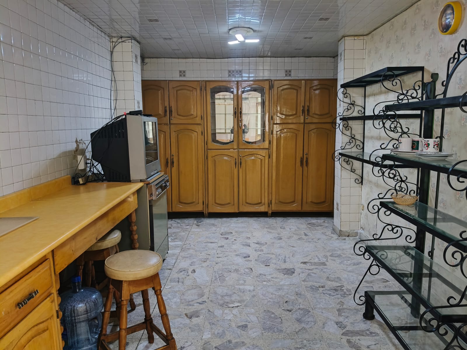 Cocina de igual tamaño con área de lavado y cuarto de servicio con baño.